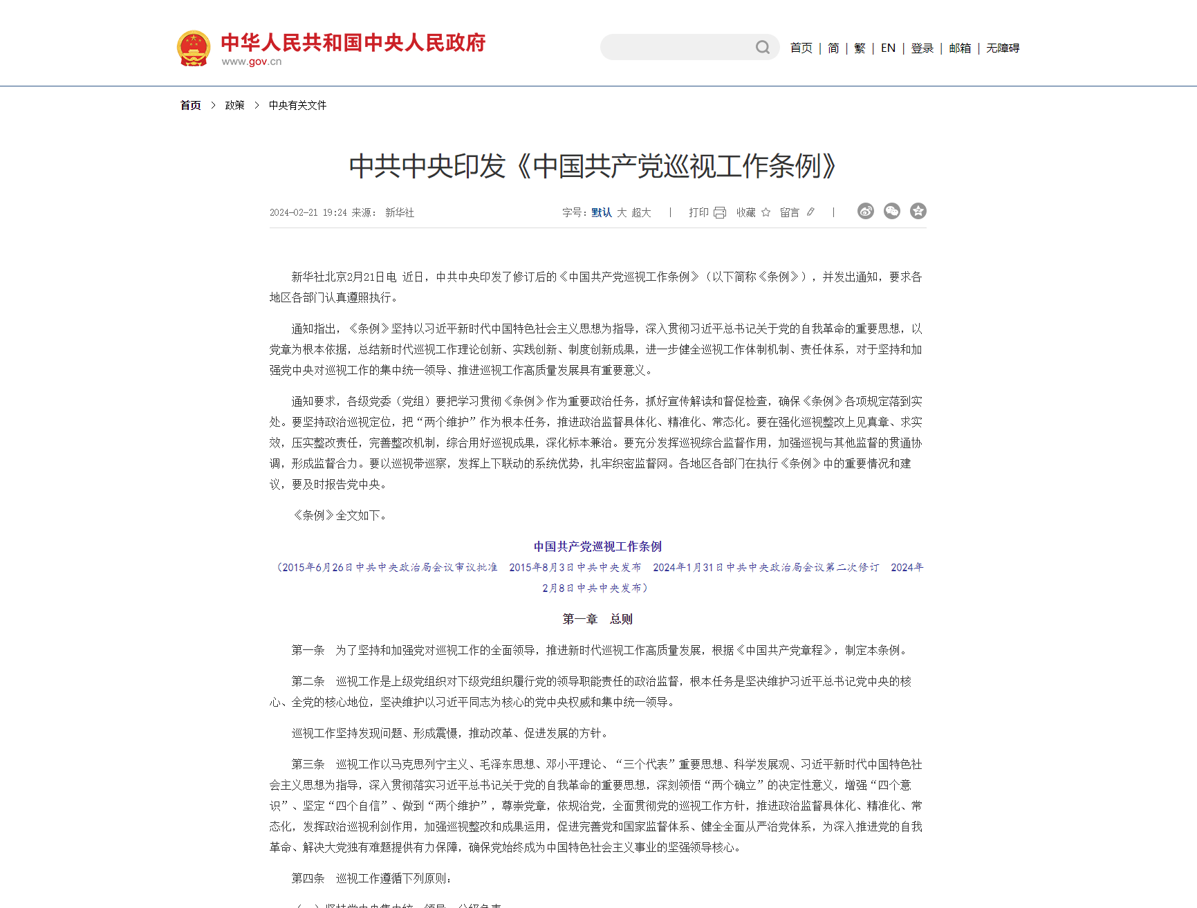 中國共產(chǎn)黨黨內(nèi)法規(guī)執(zhí)行責(zé)任制規(guī)定(試行)(2019年8月30日中共中央政治局會議審議批準(zhǔn)2019年9月3日中共中央發(fā)布) 第一條為了提高黨內(nèi)法規(guī)執(zhí)行力,推動黨內(nèi)法規(guī)全面深入實施,根據(jù)《中國共產(chǎn)黨黨內(nèi)法規(guī)制定條例》,制定本規(guī)定。第二條各級黨組織和全體黨員負有遵守黨內(nèi)法規(guī)、維護黨內(nèi)法規(guī)權(quán)威的義務(wù)。各級黨組織和黨員領(lǐng)導(dǎo)干部必須增強“四個意識”、堅定“四個自信...