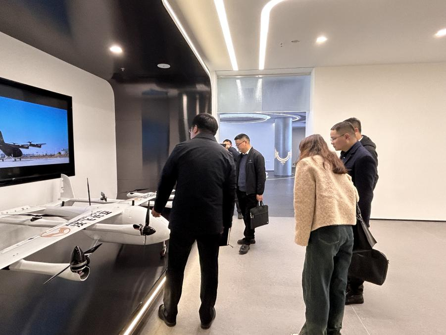 在沃飛長空新落成的企業(yè)展廳,調(diào)研組深度體驗了智能飛行器、無人機系統(tǒng)等前沿科技成果,系統(tǒng)了解低空飛行領(lǐng)域從技術(shù)研發(fā)到商業(yè)應(yīng)用的全鏈條創(chuàng)新實踐。沃飛長空副總裁兼首席公共關(guān)系官肖前志重點介紹了企業(yè)在eVTOL(電動垂直起降飛行器)、城市空中交通等領(lǐng)域的突破性進展。