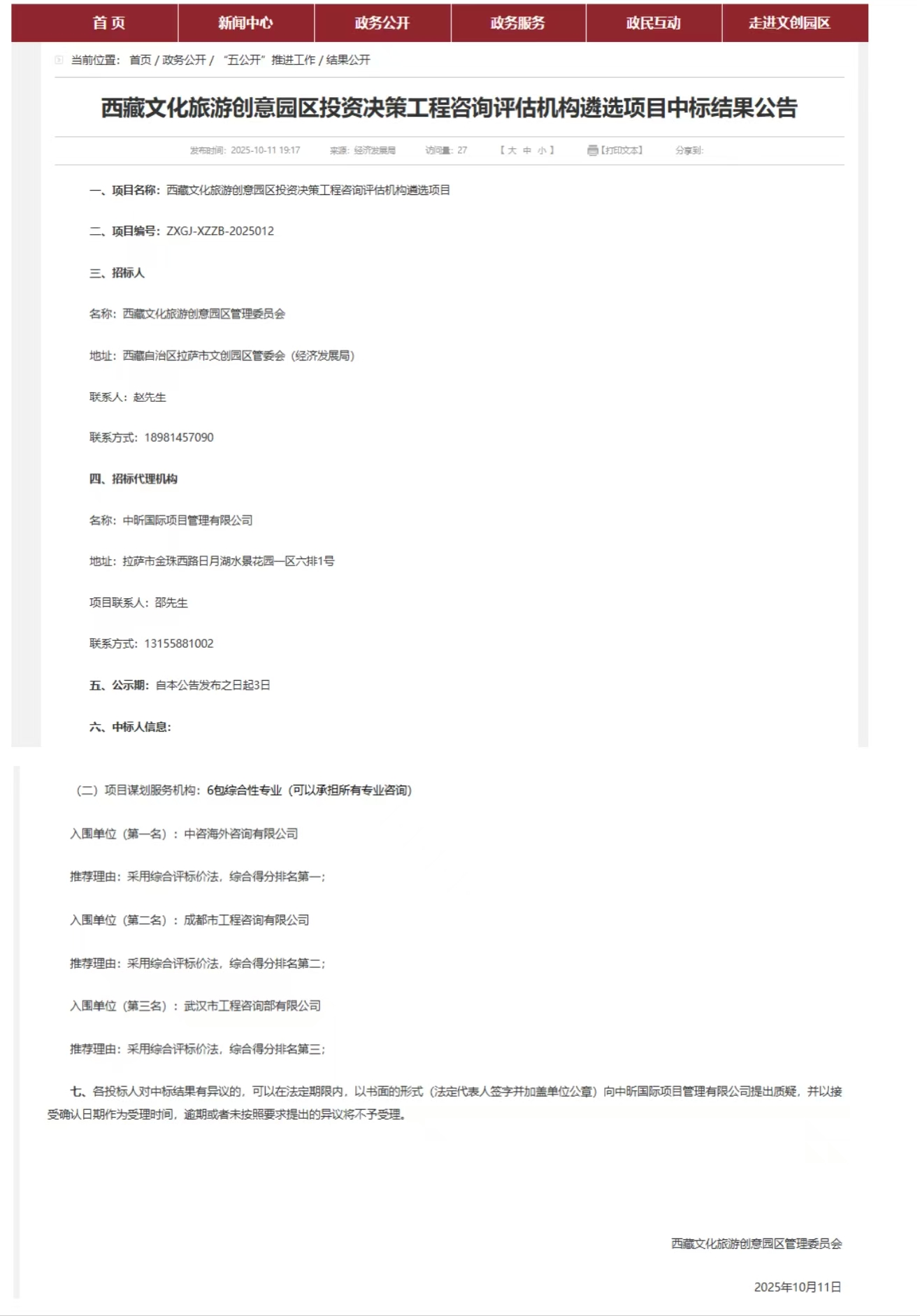 近日,成都市工程咨詢有限公司成功中標(biāo)“西藏文化旅游創(chuàng)意園區(qū)投資決策工程咨詢?cè)u(píng)估機(jī)構(gòu)遴選項(xiàng)目”,未來將作為綜合性專業(yè)咨詢機(jī)構(gòu),為園區(qū)提供覆蓋項(xiàng)目全周期的投資決策咨詢及評(píng)估服務(wù)。