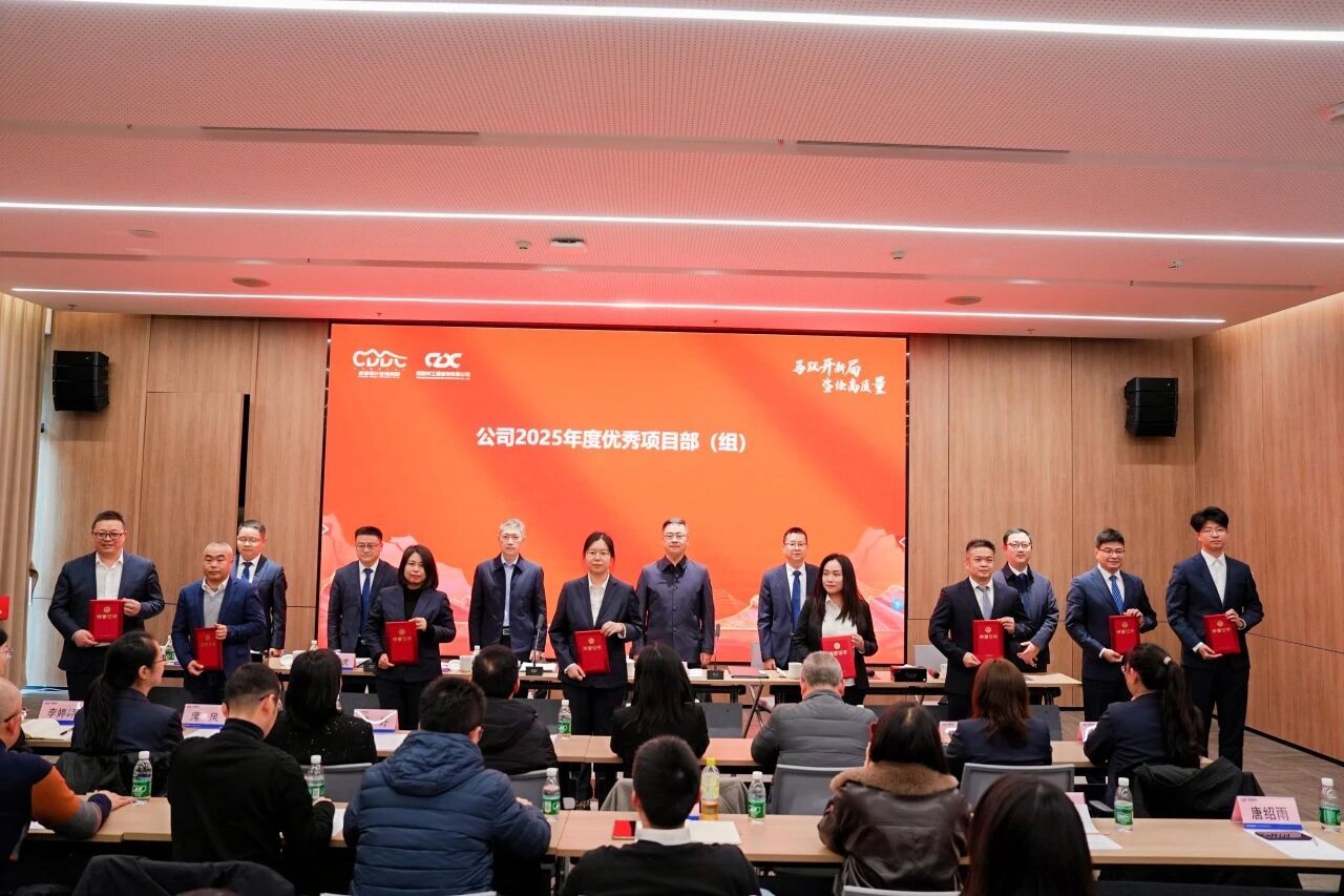 在年度表彰環(huán)節(jié),集團(tuán)和公司領(lǐng)導(dǎo)分別為獲得2025年度公司優(yōu)秀部門、優(yōu)秀智庫(kù)成果、優(yōu)秀項(xiàng)目部(組)和優(yōu)秀員工的集體和個(gè)人頒獎(jiǎng)。隨后,公司技術(shù)質(zhì)量部王天、投資咨詢事業(yè)部陽(yáng)運(yùn)秀作為優(yōu)秀員工代表上臺(tái)發(fā)言。兩位同志表示,將把成績(jī)作為新的起點(diǎn),緊扣集團(tuán)和公司戰(zhàn)略,深化學(xué)習(xí)、扎實(shí)履職,與全體同事一道為集團(tuán)和公司高質(zhì)量發(fā)展貢獻(xiàn)力量。