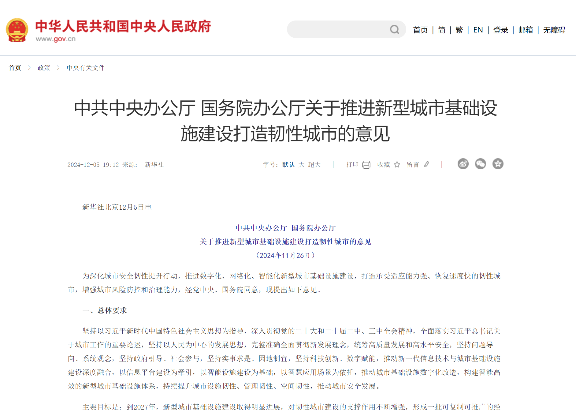 為深化城市安全韌性提升行動(dòng),推進(jìn)數(shù)字化、網(wǎng)絡(luò)化、智能化新型城市基礎(chǔ)設(shè)施建設(shè),打造承受適應(yīng)能力強(qiáng)、恢復(fù)速度快的韌性城市,增強(qiáng)城市風(fēng)險(xiǎn)防控和治理能力,經(jīng)黨中央、國(guó)務(wù)院同意,現(xiàn)提出如下意見(jiàn)。